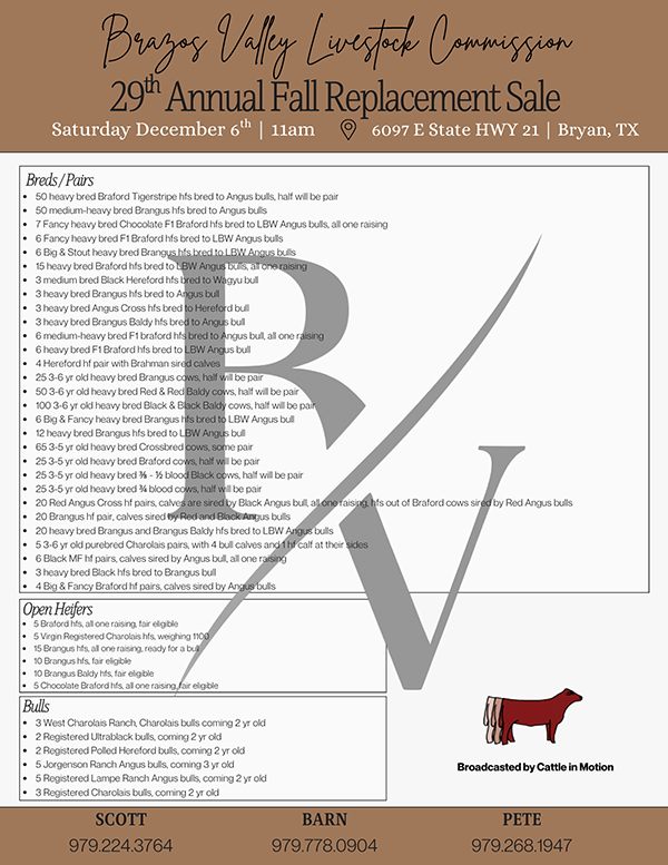 Brazos Valley Livestock Replacement Female Sale - 2025