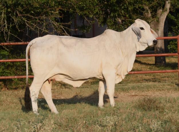 Her first bull by Pistolero sold to Lonnie Tomerlin. Her next three bulls have all been sired by LMC Ambassador - LMC Polled Integrity sold to Schneider Brahmans as a weanling (half interest) and is now co-owned with Kelly Barnard. We kept her next son LMC Polled Baron who is one our leading junior herd sires (see photo below). Her next son LMC Polled Tomcat sold to La Reina Ranch. Her next son by LMC Poll Aussie sold to the Enrique Ramos family for an average of $6,625 on 4 bull calves at weaning and now she is weaning what might be her best one yet by Ambassador that sells as Lot 12.