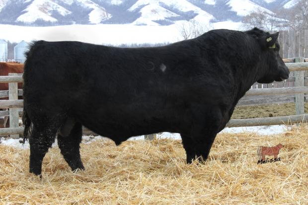 Very long bodied bull out of a 1st calf heifer. Extra performance. Mature cows or larger volumned heifers. Red Dam - Black RC Sire.
