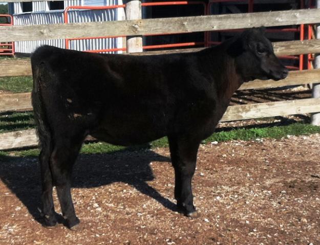 This female is as clean and femine in her appearance as any other calf in the offering. She was weaned late because of her age and is not broke and never been washed. For someone who can see past the hair preparation, she will be a great purchase!