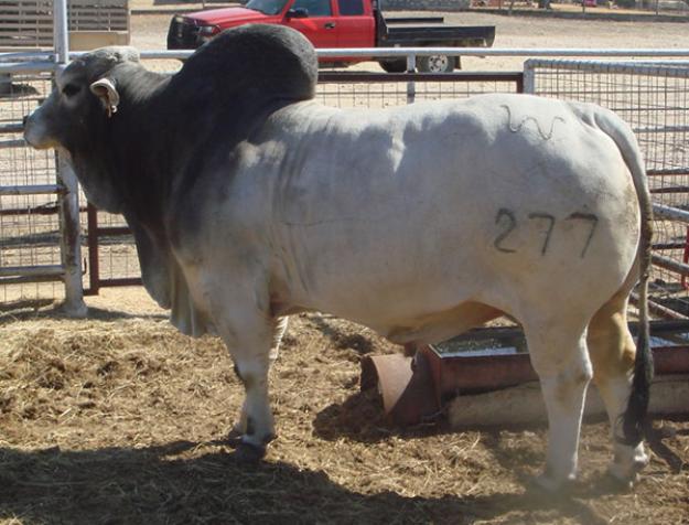 A great herd sire for Flying W Ranch and the Brahman breed . 277 sired 5 different herd sires used by Flying W Ranch out of different cow lines including 592/8 sire of 2017 National Champion Female . 277 sired the champion of the 2016 ABBA bull test and there 7 bulls in the bull test sale out of 277 and 4 of his sons from 4 different breeders. 277 is currently a trait leader for birth weight as are 3 of his sons. 277 has been a trait leader for rib eye area as well as marbling in the past several years. A moderate framed extremely muscular clean sheathed level hipped bull that will give your herd consistent production oriented offspring.