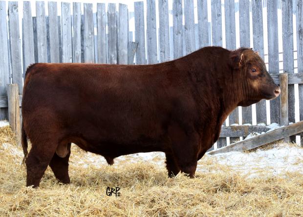 Pride has solid structure, unsurpassed copacity and incredible production ability. We have paried that with an outcross red bull whose parents are both black. The grandsire is the black bull, SAV Predominant 4438. Qualified for CAN, U.S., AUSTRALIA